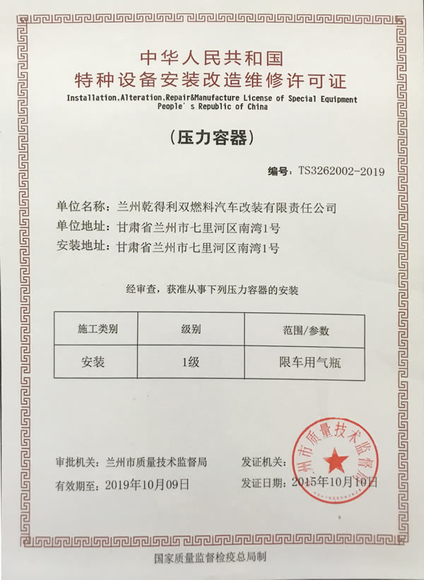 甘肅省燃氣汽車改裝企業(yè)資質(zhì)證
